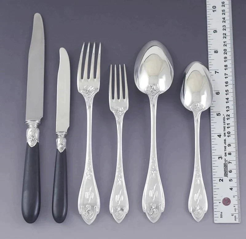 Superb French 950 Silver Art Nouveau 84pc Flatware Set Serves 12