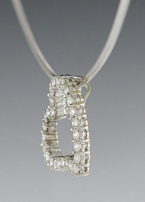 Presented is a very attractive, 18 karat white gold and diamond heart necklace.