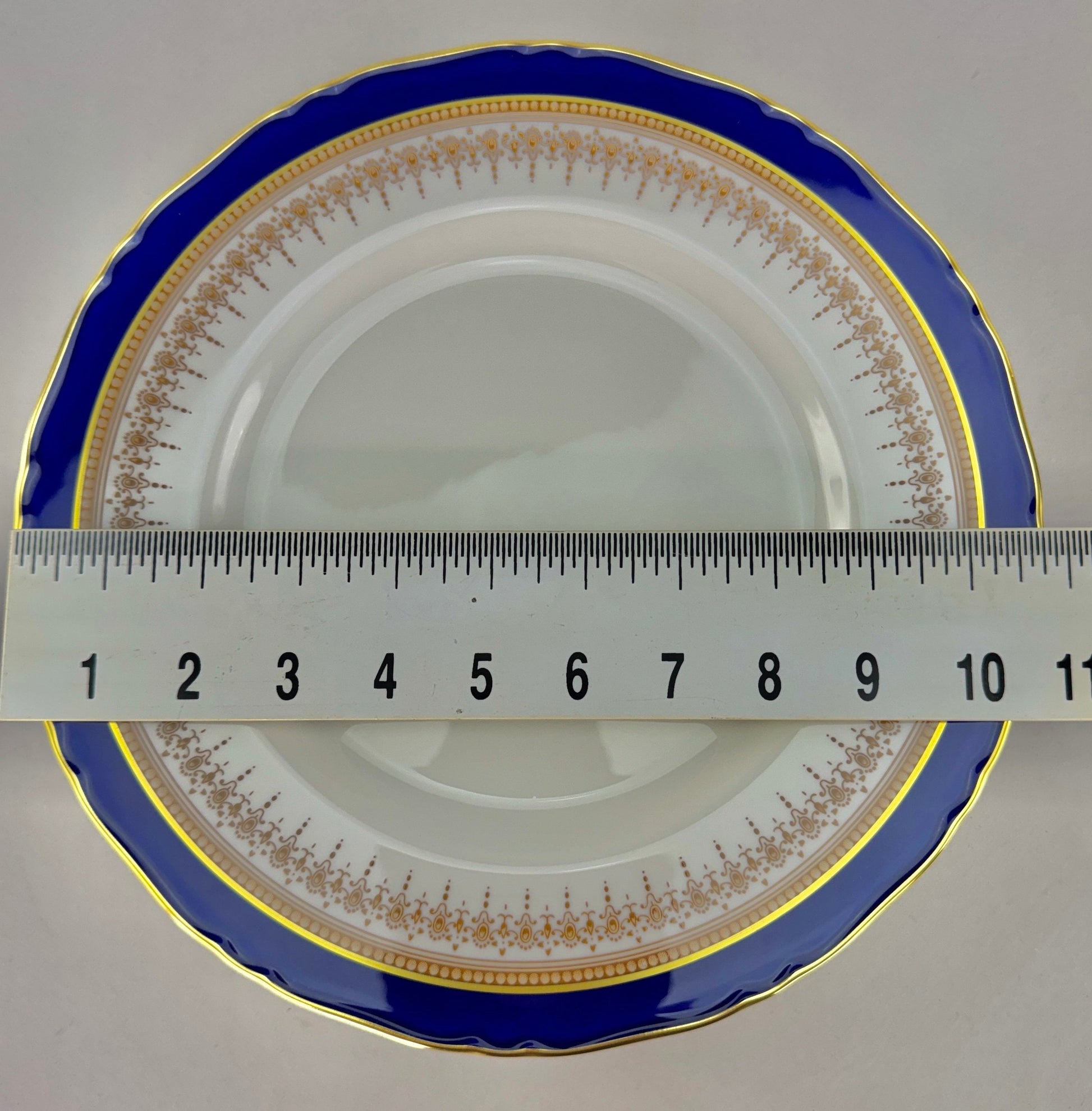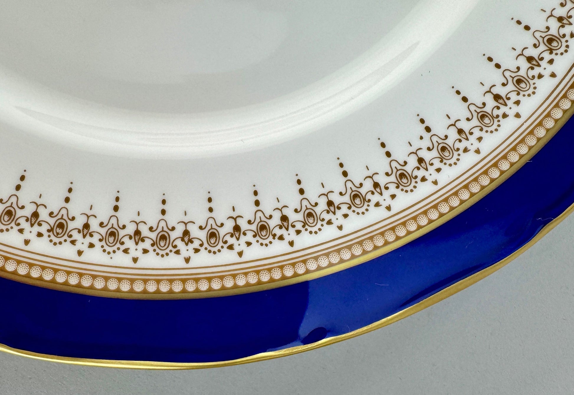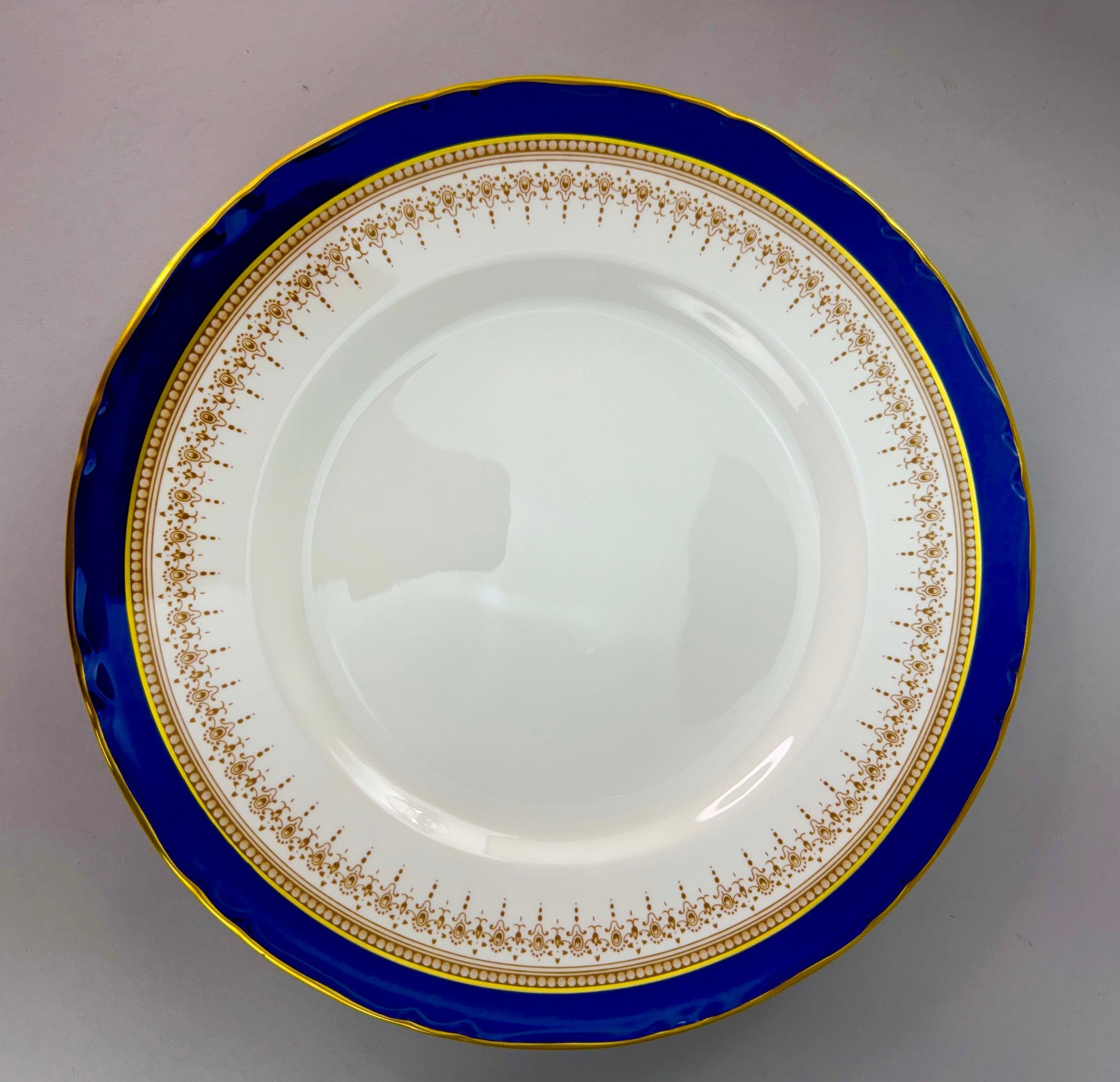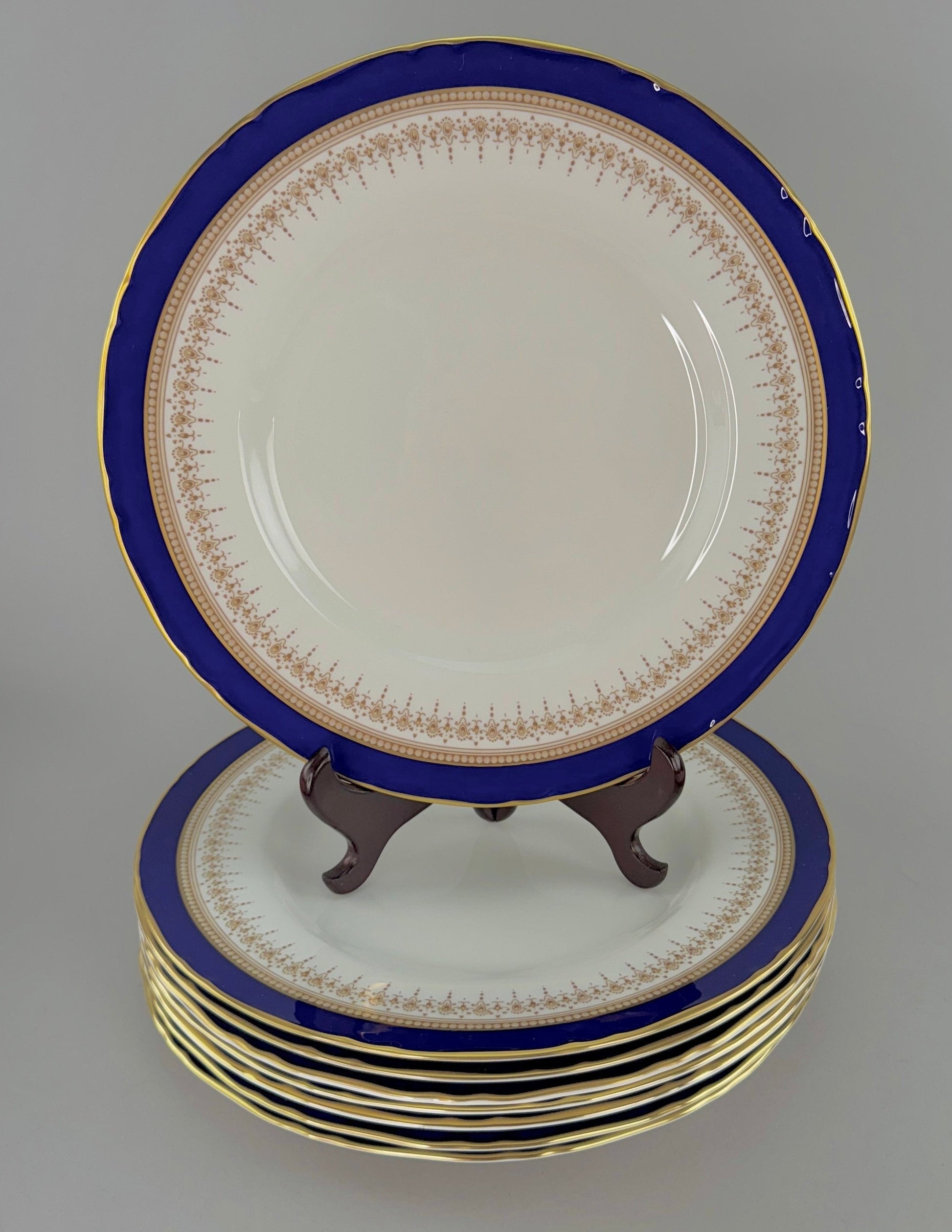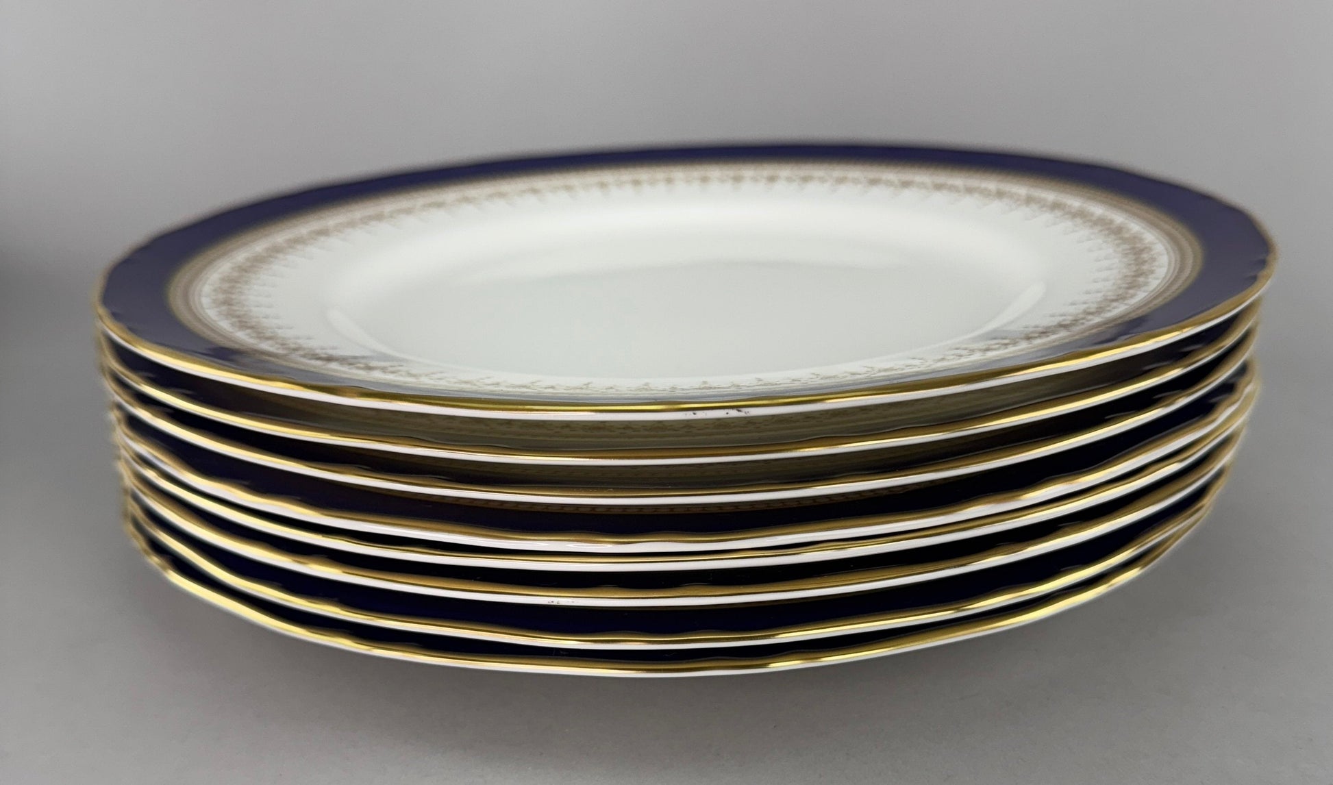 Superb Set 8 Royal Worcester Regency Cobalt Blue Gilt 10.75" Dinner Plates