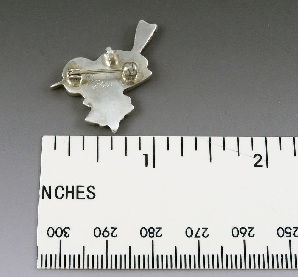 Sweet Eva Etsate Native American Zuni Sterling Silver MOP Bird Dove Pin Pendant