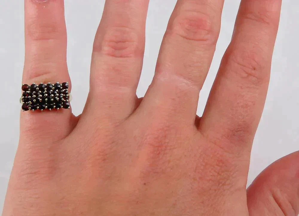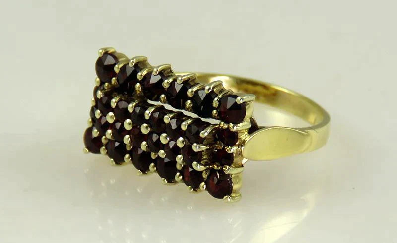 Unique Bohemian 14K Gold & 28 Natural Garnet Statement Ring
