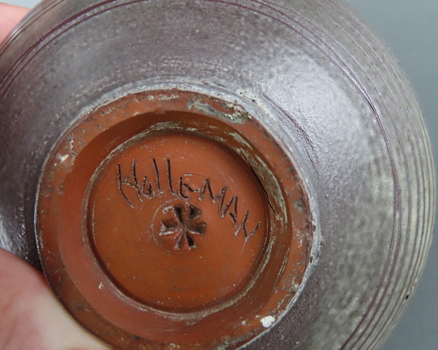 This piece is signed on the underside with the star mark and Holleman for David Holleman. David Holleman was a well known New England Artist who did many murals and mosaic commission around the United States, England, and Africa. He is very well known for the Aztec Calendar Stone ceramic mural on display at the Boston Science Museum under the Foucault Pendulum.