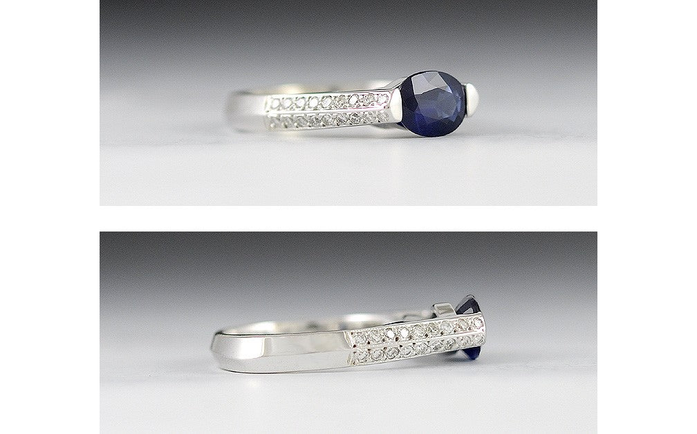 Unique Modern 18K White Gold Sapphire & Diamond Ring