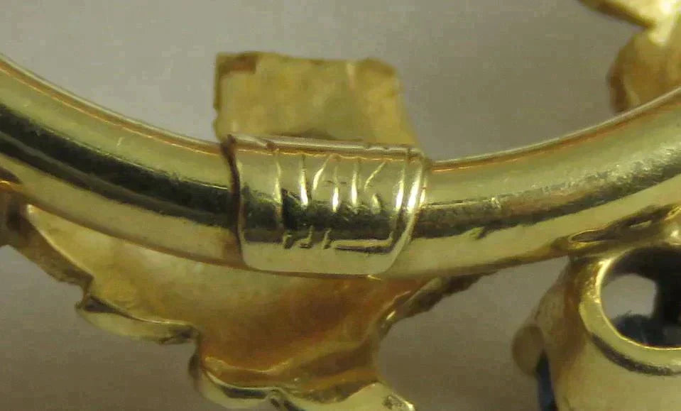 The back is marked 14K. This piece has been tested and is guaranteed to be 14 karat gold purity.