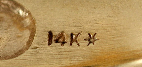 The ring is hallmarked on the inside of the band with 14k. We have tested it with nitric acid and guarantee it to be 14 karat gold purity.