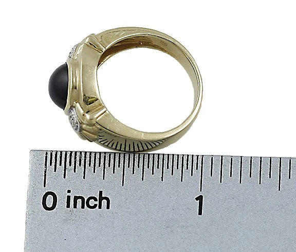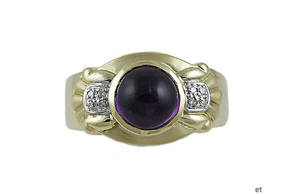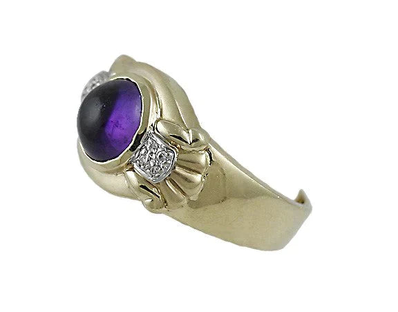 Vibrant 14K Yellow Gold Cabochon Purple Amethyst Diamond Ring Size 6.5