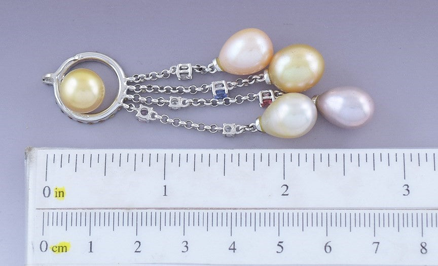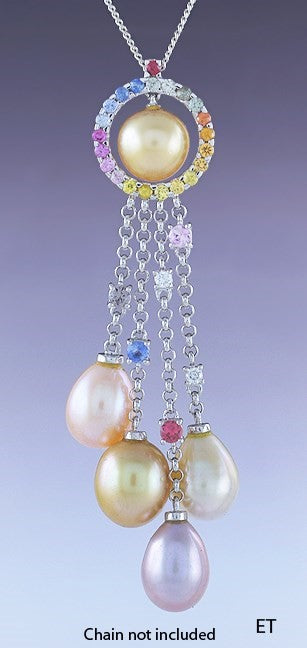 Vibrant 18K White Gold Multicolor Sapphire Pearl Pendant