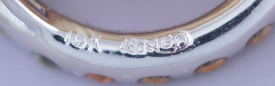 The pendant is marked 18K and has a maker’s mark. This piece has been tested with nitric acid and is guaranteed to be 18 karat gold purity.