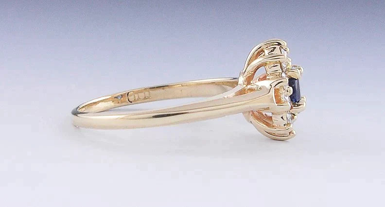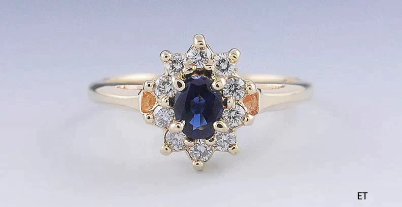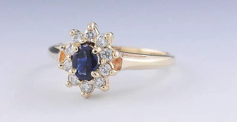 Vibrant Blue Sapphire & Diamond 14k Yellow Gold Cluster Halo Ring Size 5.75