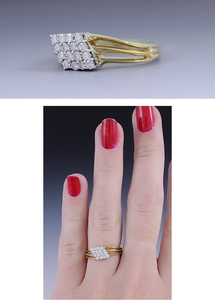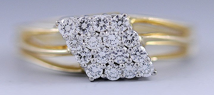 Vibrant Brilliant 14k Yellow Gold Diamond Cluster Ring Size 6.25