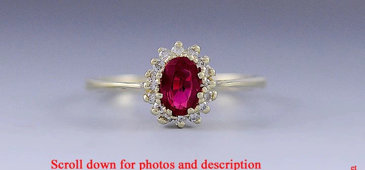Vibrant Red Ruby & Diamond 14k Yellow Gold Halo Ring Size 6.75
