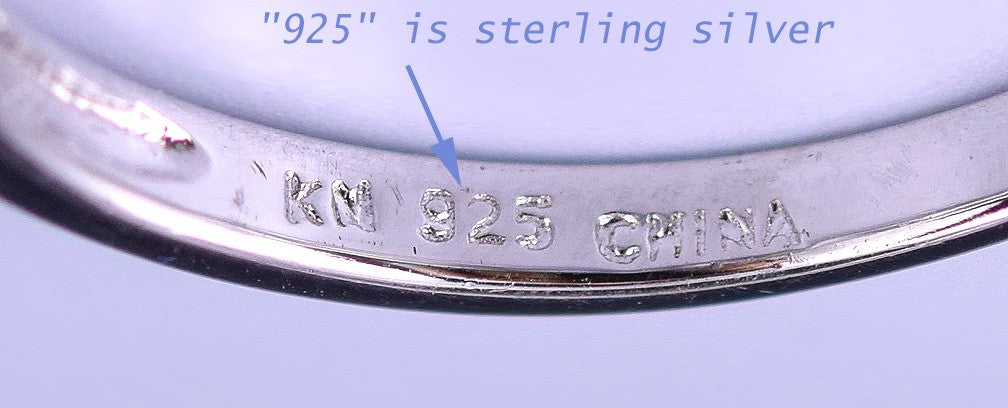 It is stamped “925” for sterling silver. It is also stamped “China” and has a maker's mark.