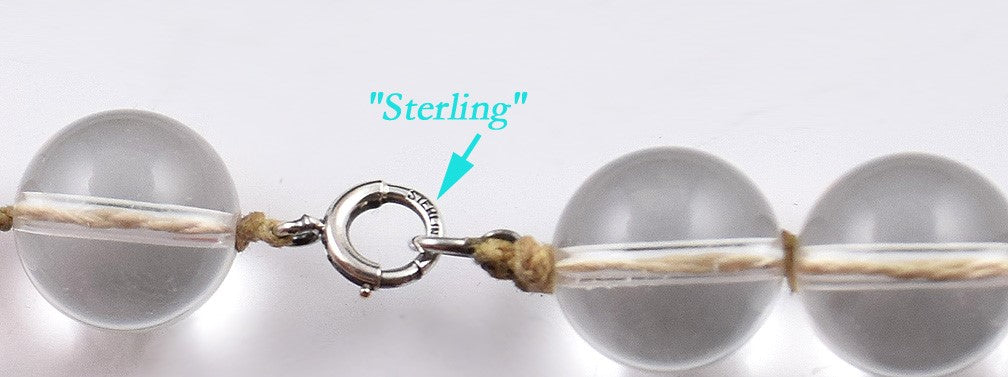 Vintage Polished Round Rock Crystal Collar-Style Necklace Sterling Silver Clasp