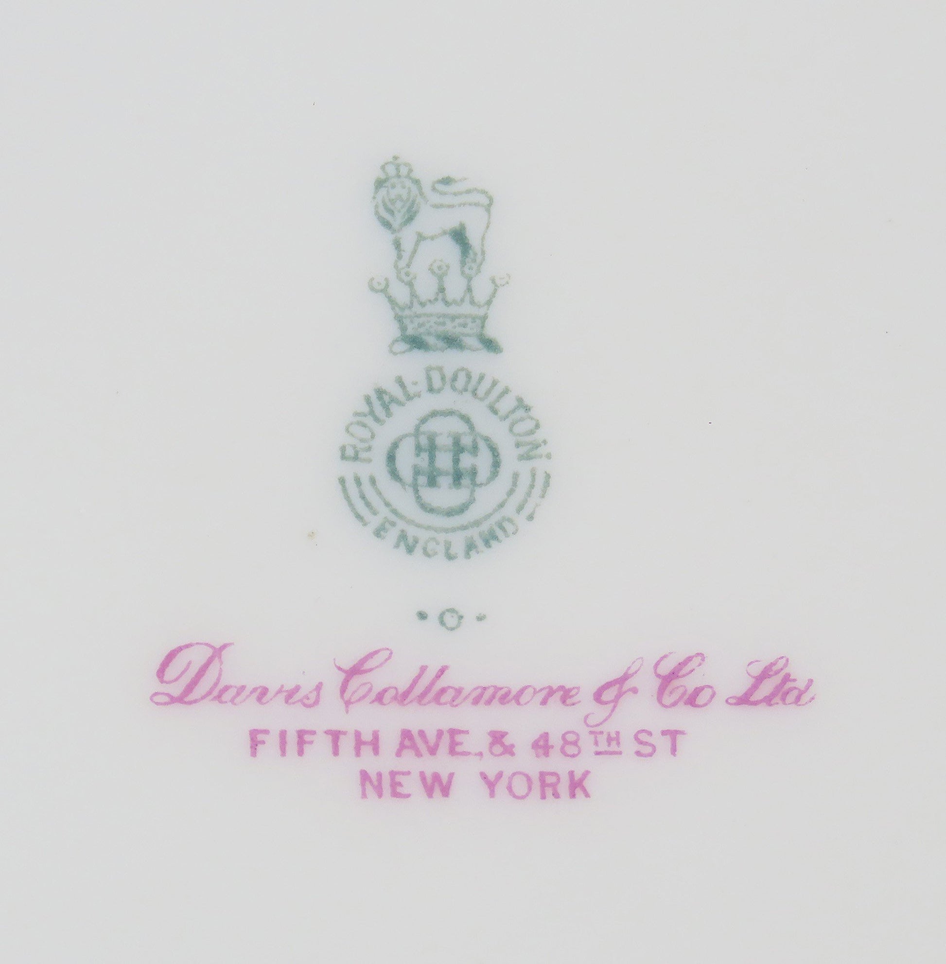 The underside of each piece is marked with the maker's mark for Royal Doulton and with a retailer “Davis Collamore & Co Ltd.”.