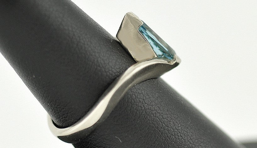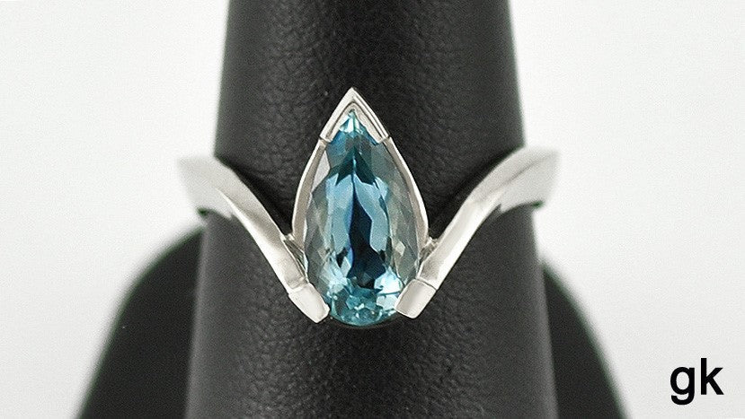 Wonderful 14K White Gold and Genuine Blue Topaz Ring Size 6.5 Tear Drop Shape
