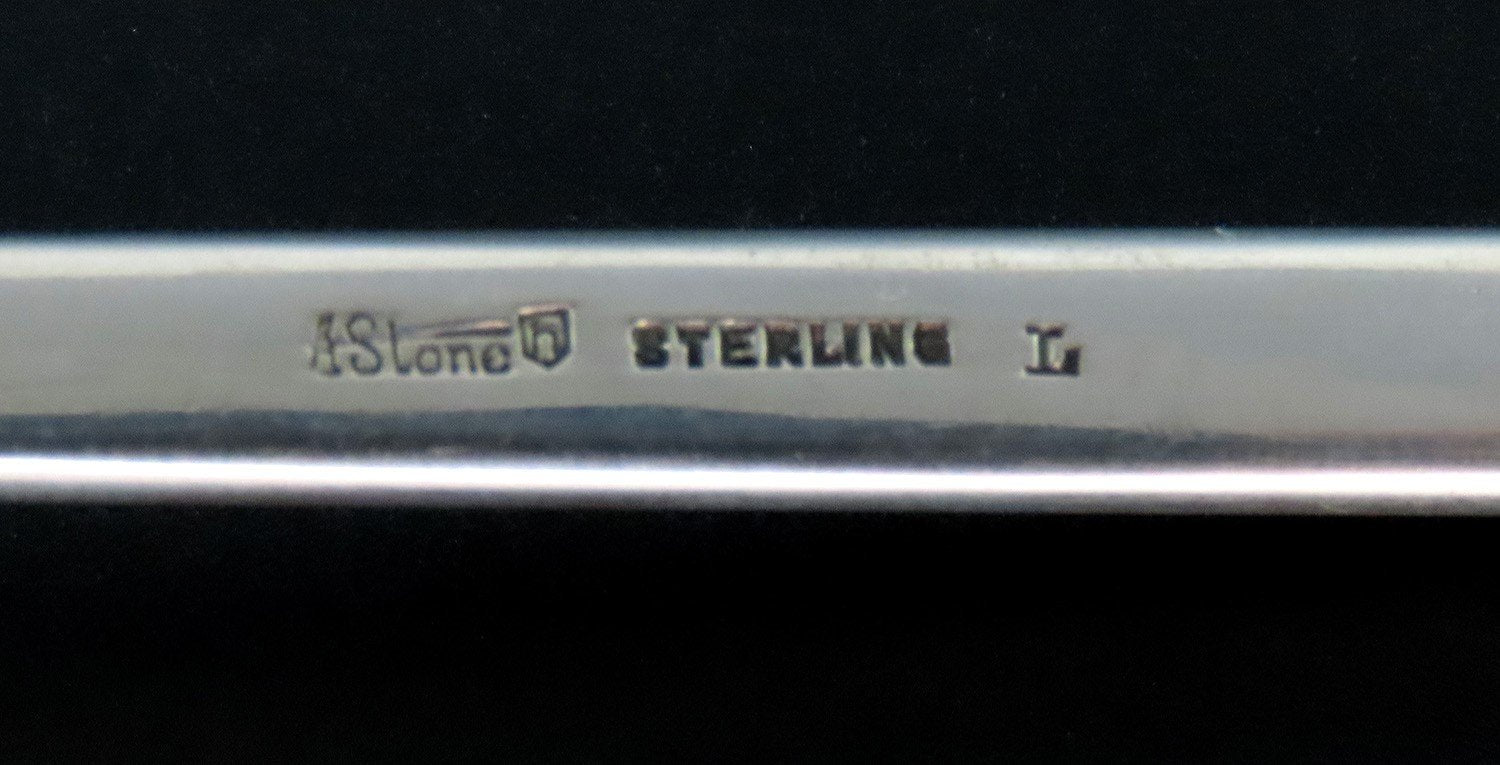 The reverse is marked sterling along with the maker's mark for Stone Associates ( made in 1937 or later) and the mark of the Craftsman, Sylvanus E. Lamphrey.