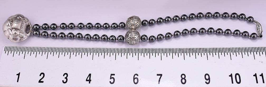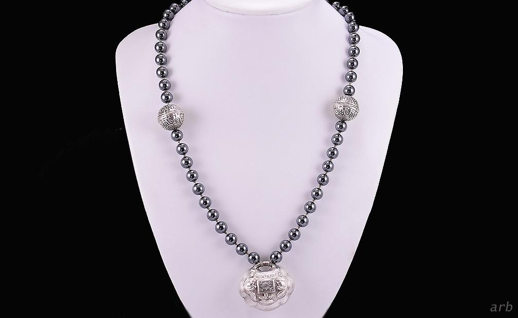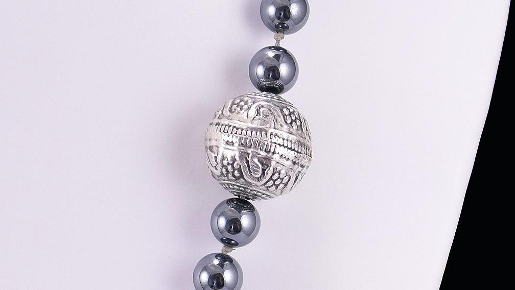 Wonderful Asian Vintage 800+ Purity Silver and Hematite Round Bead Necklace
