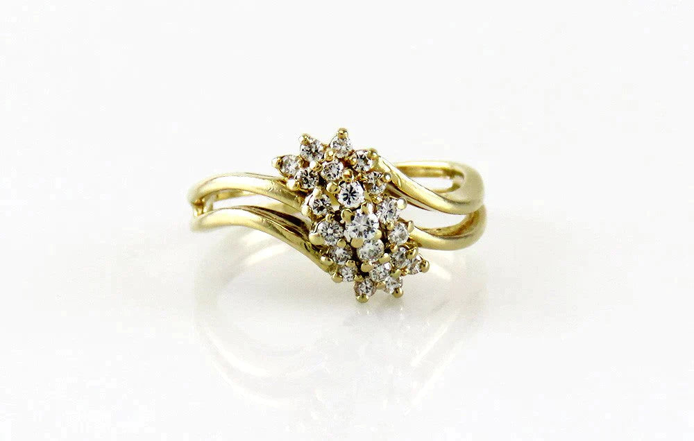 Wonderful Quality 14K Yellow Gold 21 Diamond Gemstone Bypass Ring