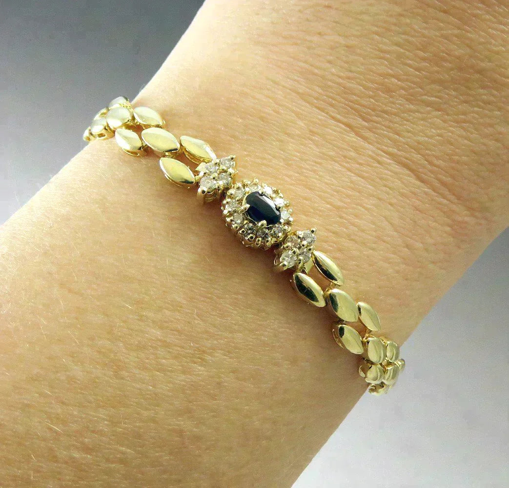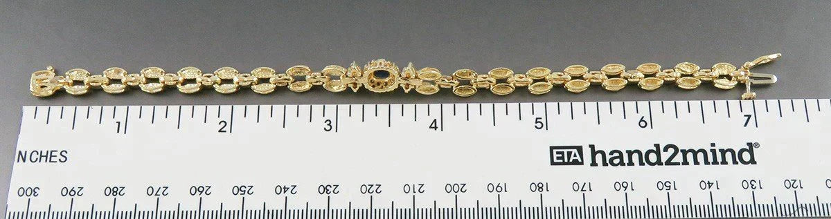 Wonderful Quality 14K Yellow Gold Natural Sapphire Diamond Linked Bracelet 6.75"