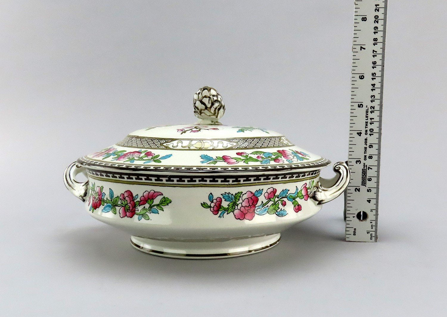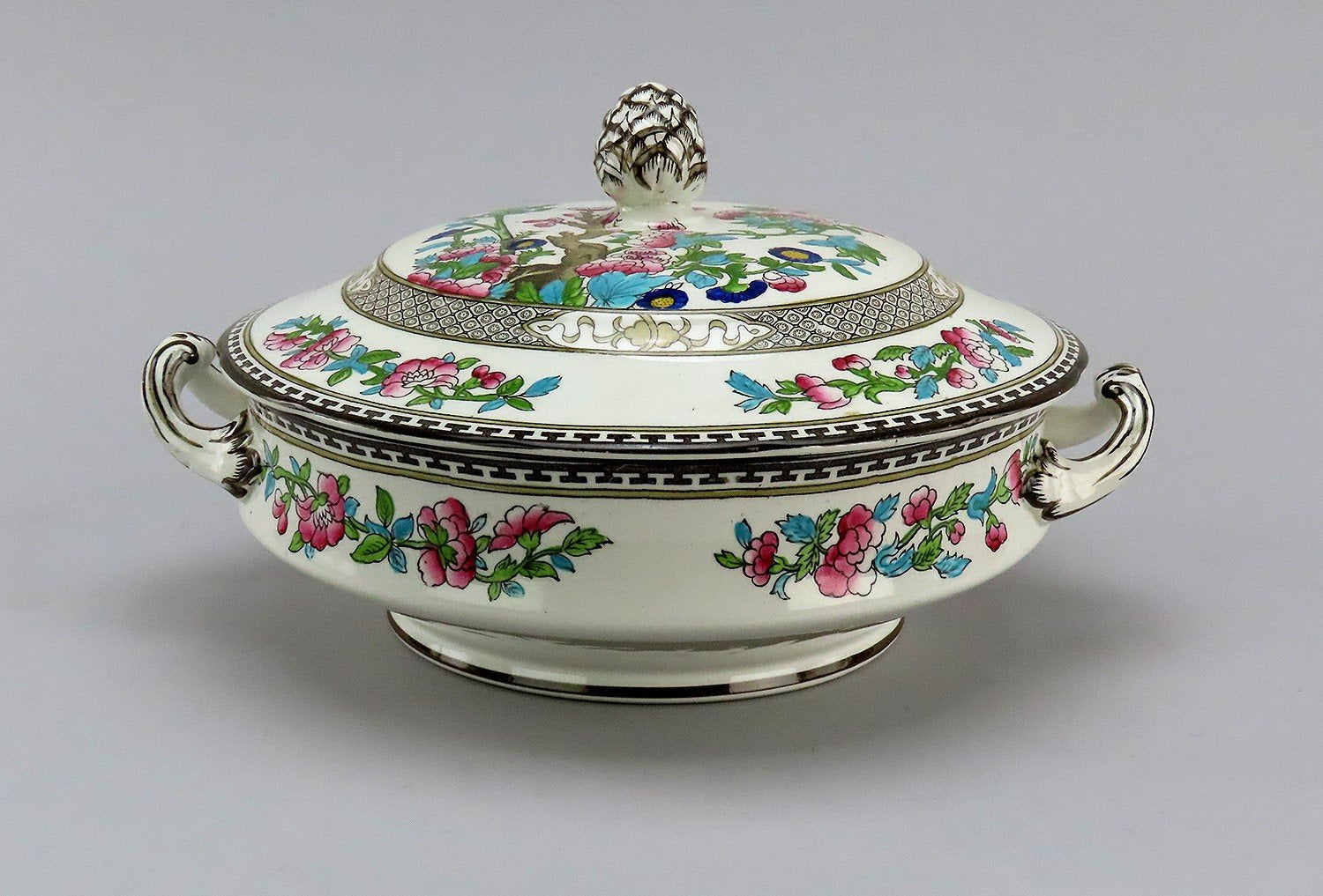 Wonderful Vintage Hancock Porcelain Indian Tree Covered Dish Black Key Gold Trim