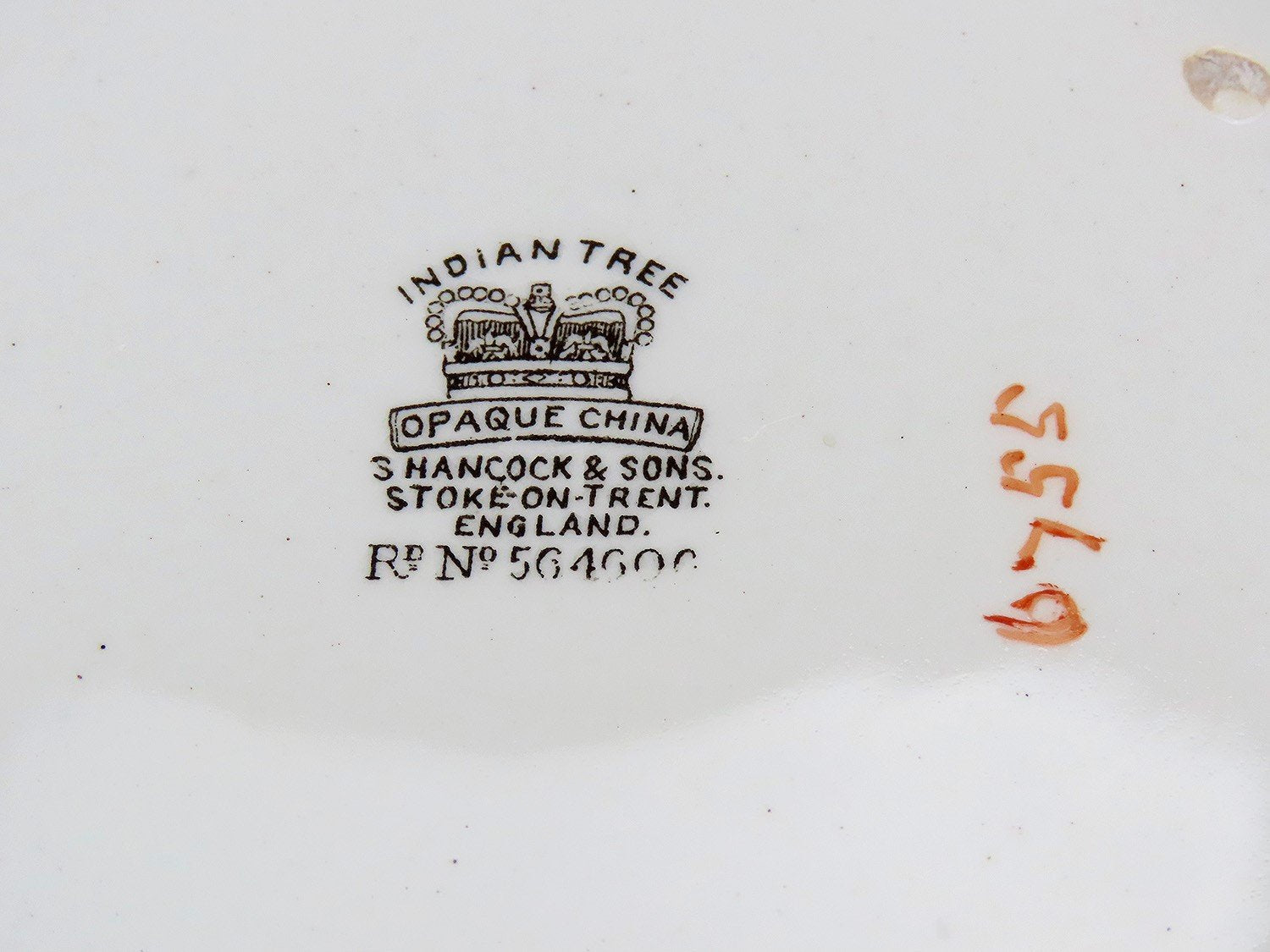 The underside of the piece is marked with the maker's mark for Sampson Hancock & Sons and the pattern name “Indian Tree”, England. We have other pieces in this pattern. We encourage you to view our page or reach out if you are interested in more of this collection.
